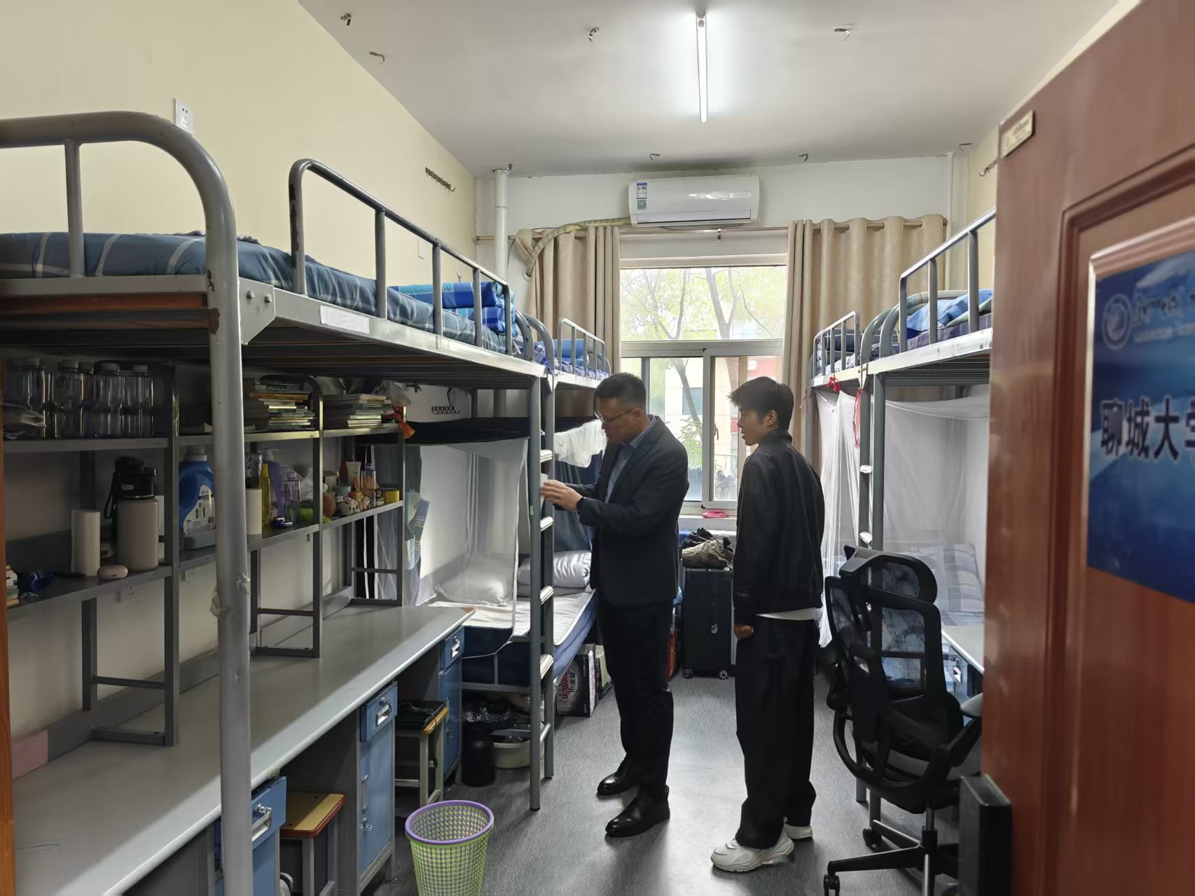 检查工作遵循“全覆盖、无死角、重实效”原则,重点排查宿舍内违规电器使用、私拉乱接电线、易燃易爆物品存放等违规行为,同步细致查验消防设施配备完整性、逃生通道畅通性等关键安全要素。卫生方面,梁建新从整体布局、物品摆放、清洁程度等维度综合评估,对卫生优良、内务规范的宿舍予以肯定,对存在卫生死角、物品杂乱的宿舍现场提出整改意见。检查期间,梁建新与同学们亲切交谈,询问其学习生活情况,叮嘱大家切实提高安全防范意识,严格遵守宿舍安全管理规定。同学们纷纷表示,此次检查不仅帮助大家排查了日常容易忽略的安全隐患,更进一步明确了宿舍管理的具体要求。后续大家将主动整改发现的问题,规范内务卫生管理,共同维护安全、整洁、有序的住宿环境。