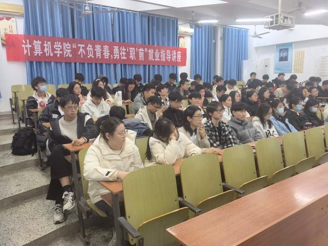 宋文平从毕业抉择、就业、考公考编、留学、考研五个方面进行深入探究,对近年来社会的快速发展和科技的不断进步展开分析,她表示大学生就业形势越来越严峻,计算机行业对人才的需求不断增加,为提高市场竞争力,同学们需要掌握专业知识,提升专业能力。针对考研形势和考研竞争压力,宋文平向同学们分享了学习经验、面试技巧、择校标准以及如何判断院校考试难度,向同学们推荐了一些计算机学习和数据查找库,希望同学们能够借此学好专业知识,在自己的专业领域发光发热。宋文平指出,作为新一代的计算机专业人才,同学们不仅要注重自我能力的提升和发展,培养终身学习的习惯,不断适应社会的发展和变化,也应当承担起社会责任,为社会发展和进步做出贡献。与会的同学们认真聆听、做好笔记,思考着如何做好个人职业规划、树立明确的就业目标,为将来的努力方向奠定基础。