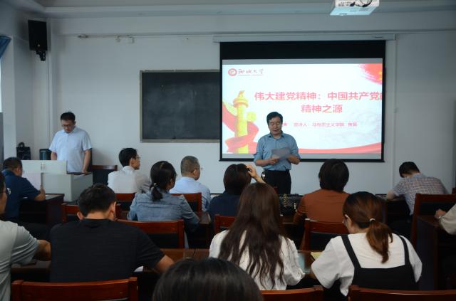“人无精神则不立,国无精神则不强”。黄昊从伟大建党精神形成的基础和条件、伟大建党精神的深刻内涵、 伟大建党精神是中国共产党人精神谱系的历史源头和高度凝练、在新时代弘扬伟大建党精神四个方面对伟大建党精神进行宣讲。黄昊指出,建党精神可高度概括为:坚持真理、坚守理想;践行初心,担当使命;不怕牺牲,英勇斗争;对党忠诚、不负人民。继承传扬伟大建党精神,必将成为激励全党全国人民迈进新征程、奋进新时代的强大精神动力。作为教育工作者,要把学习七一重要讲话精神同党史学习教育结合起来,同推动教书育人方式改革创新结合起来,加强和改进党对教育工作的全面领导,落实立德树人根本任务。宣讲报告内容丰富、脉络清晰,深入浅出、通俗易懂,有理论、有思想、有事例,具有很强的指导性和针对性,引起听众热烈反响。广大党员纷纷表示,在本次宣讲报告中深受启发,受益匪浅,牢记初心使命,担当作为奋进,努力把学习成果转化为实际工作成效。