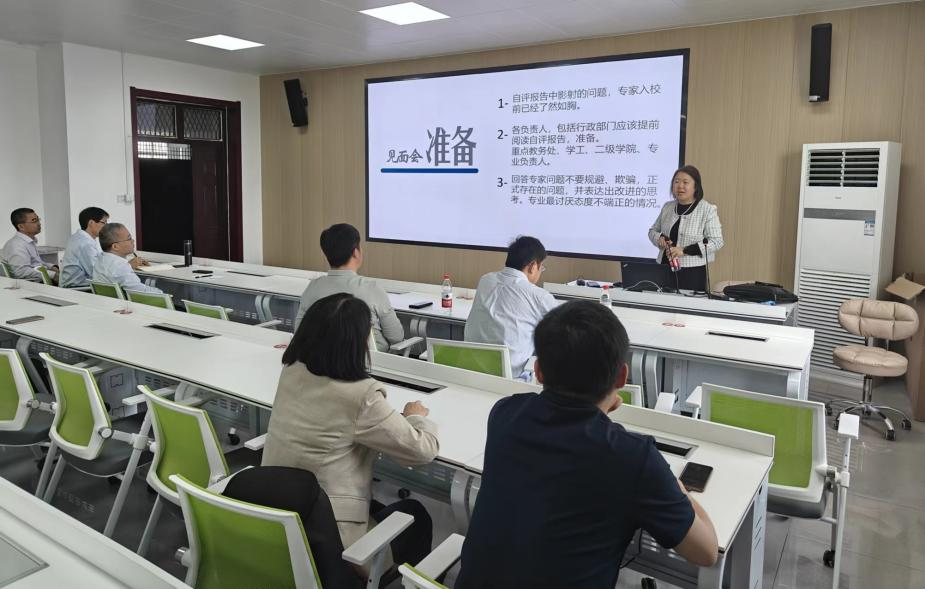 报告中,丁璟主要围绕专家入校考察日程计划、专家考察时间节点以及入校前的准备工作进行了详细地介绍。首先,在专家入校前的见面会准备方面,强调了自评报告中所映射的问题,需要所有老师熟悉了解;从学校至二级学院各负责人,包括行政部门都要提前做好准备;另外强调在专家提出的问题方面,要求相关人员要端正态度,不能有规避和欺骗的行为。随后,针对专家入校考察日程分时间节点进行详细介绍,从每个节点的主要任务和注意事项方面以及涉及到的座谈人员进行详细地解读。最后,梳理了前期工程教育专业认证专家反馈意见,就学院教职工提出的工程教育专业认证相关问题进行解答。